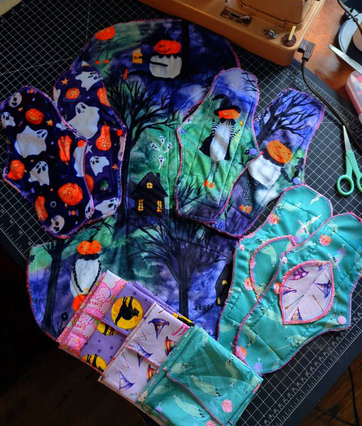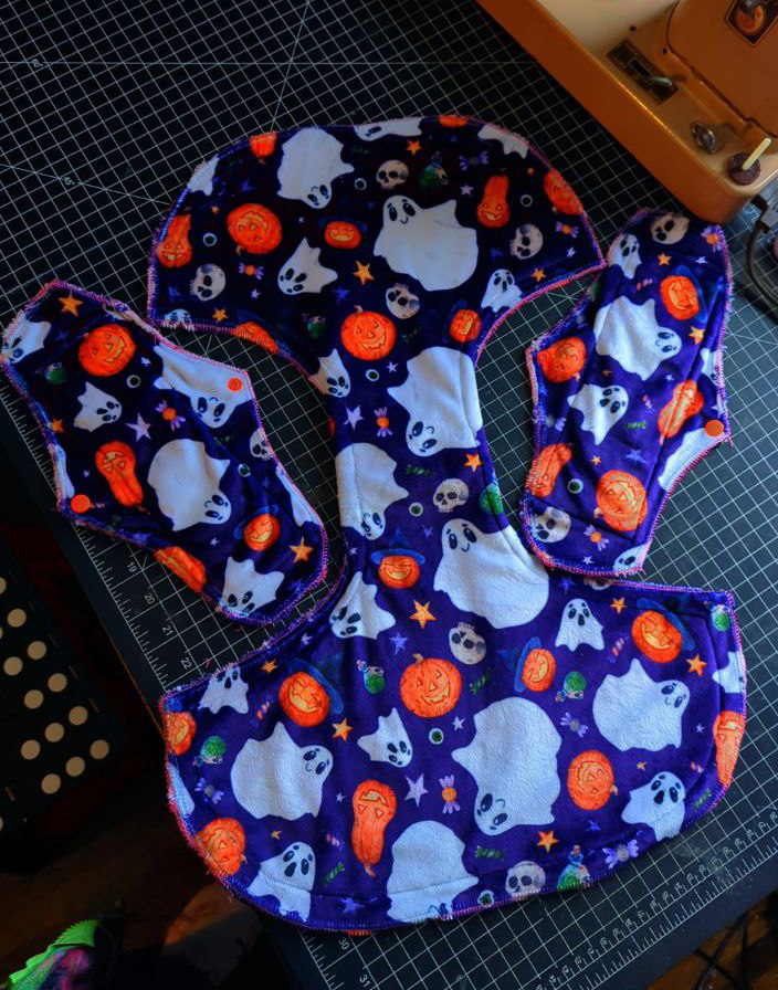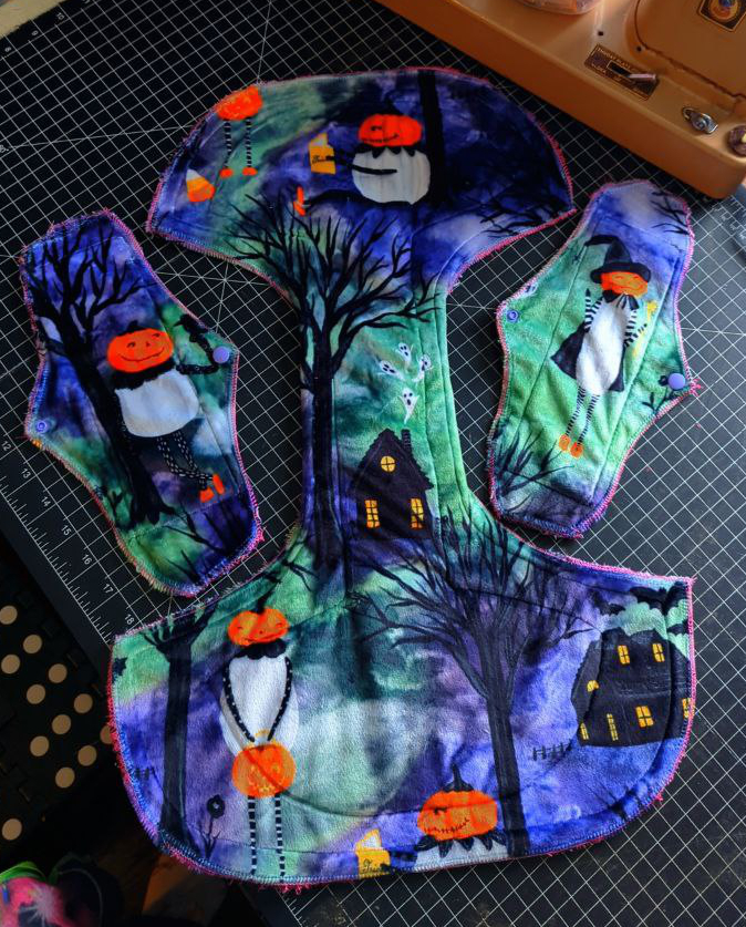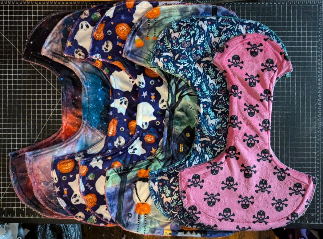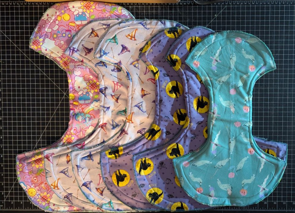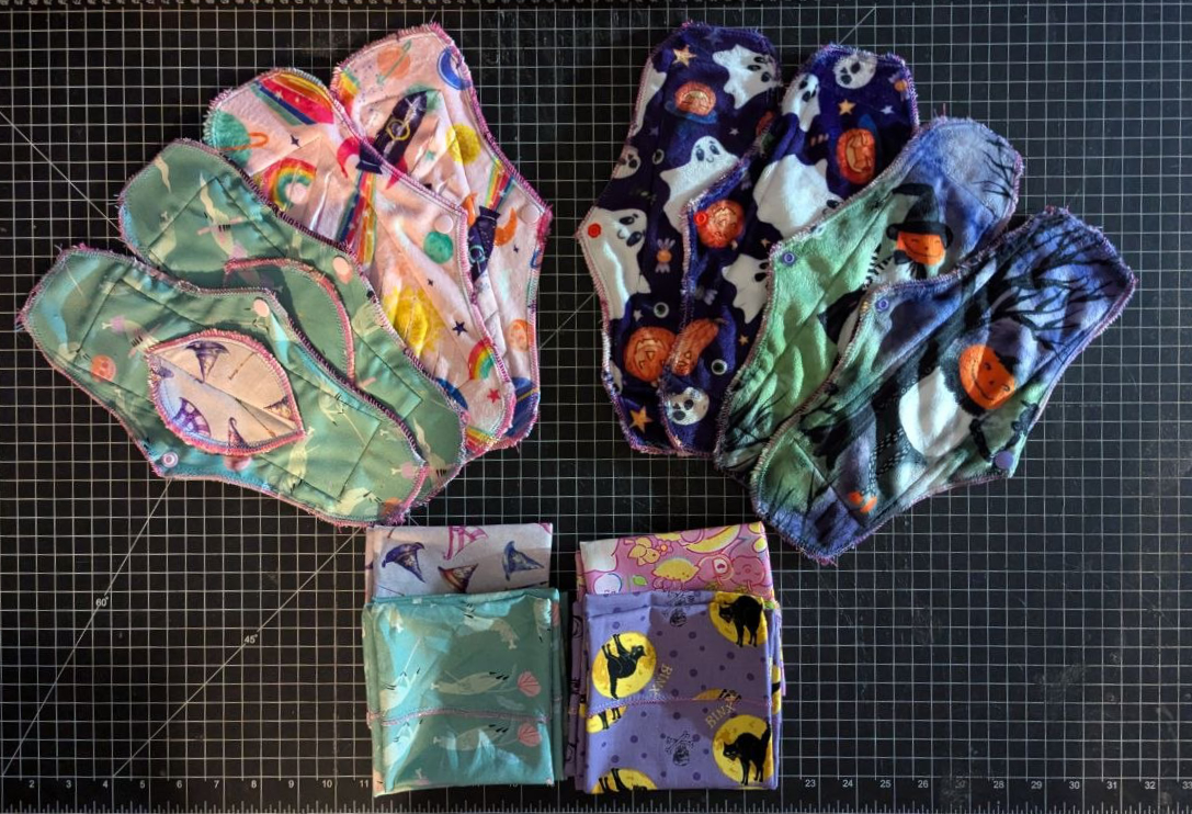 We can work with a variety of patterns, and we can customize these pads to fit your body and absorbancy needs.